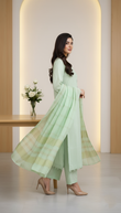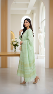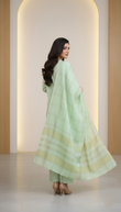 Trouser: Premium Viscose in a matching pastel mint shade, tailored for a refined and graceful silhouette.