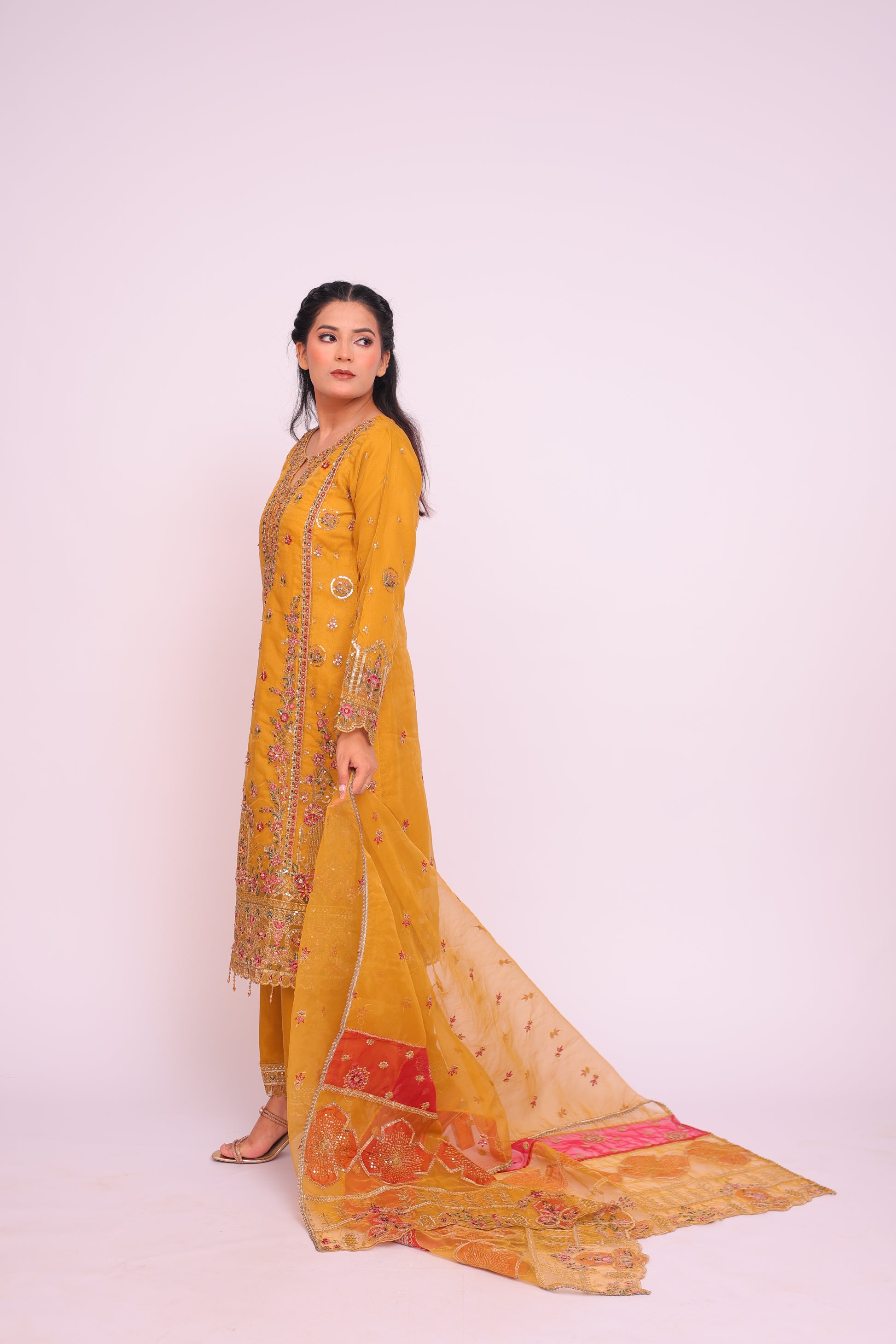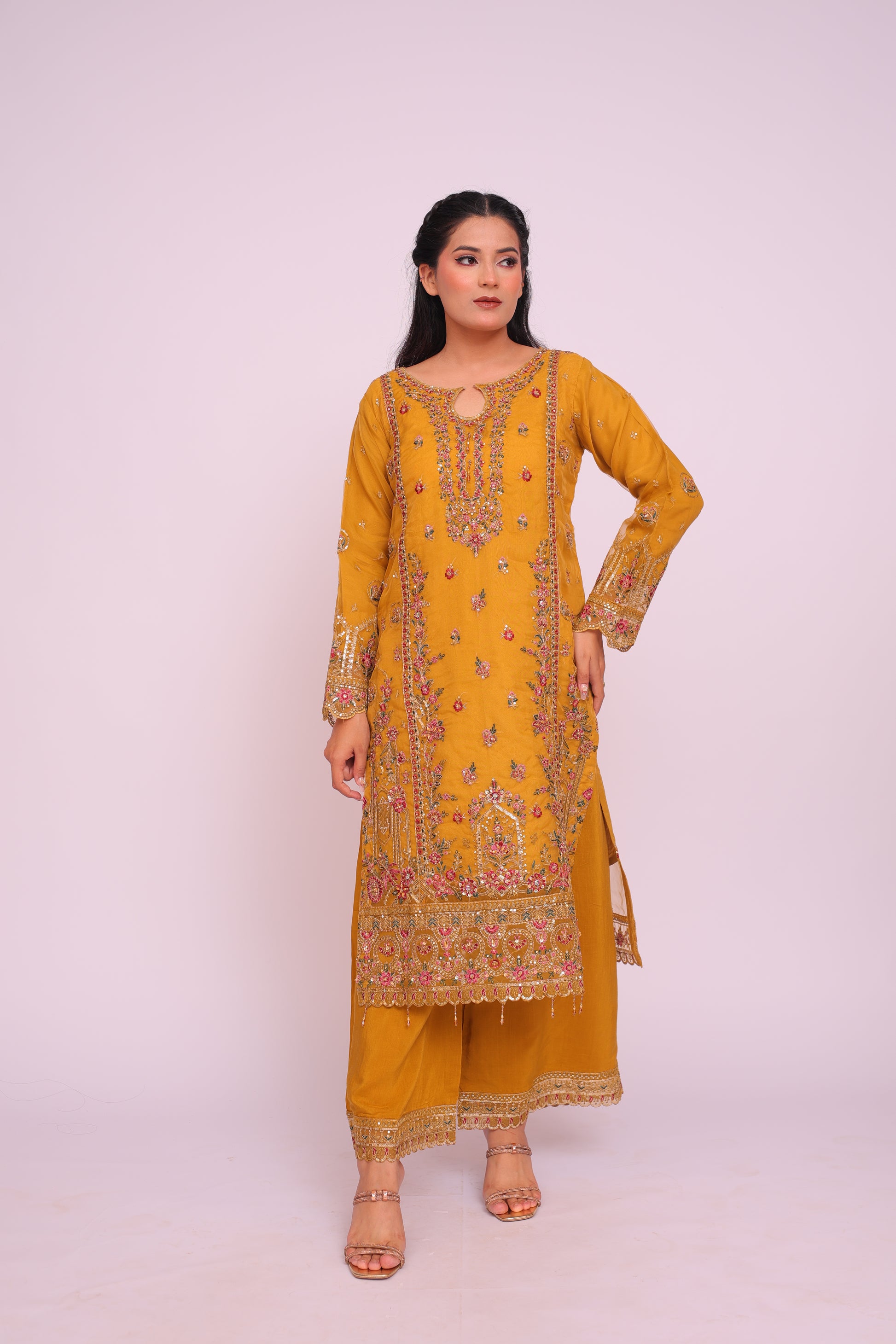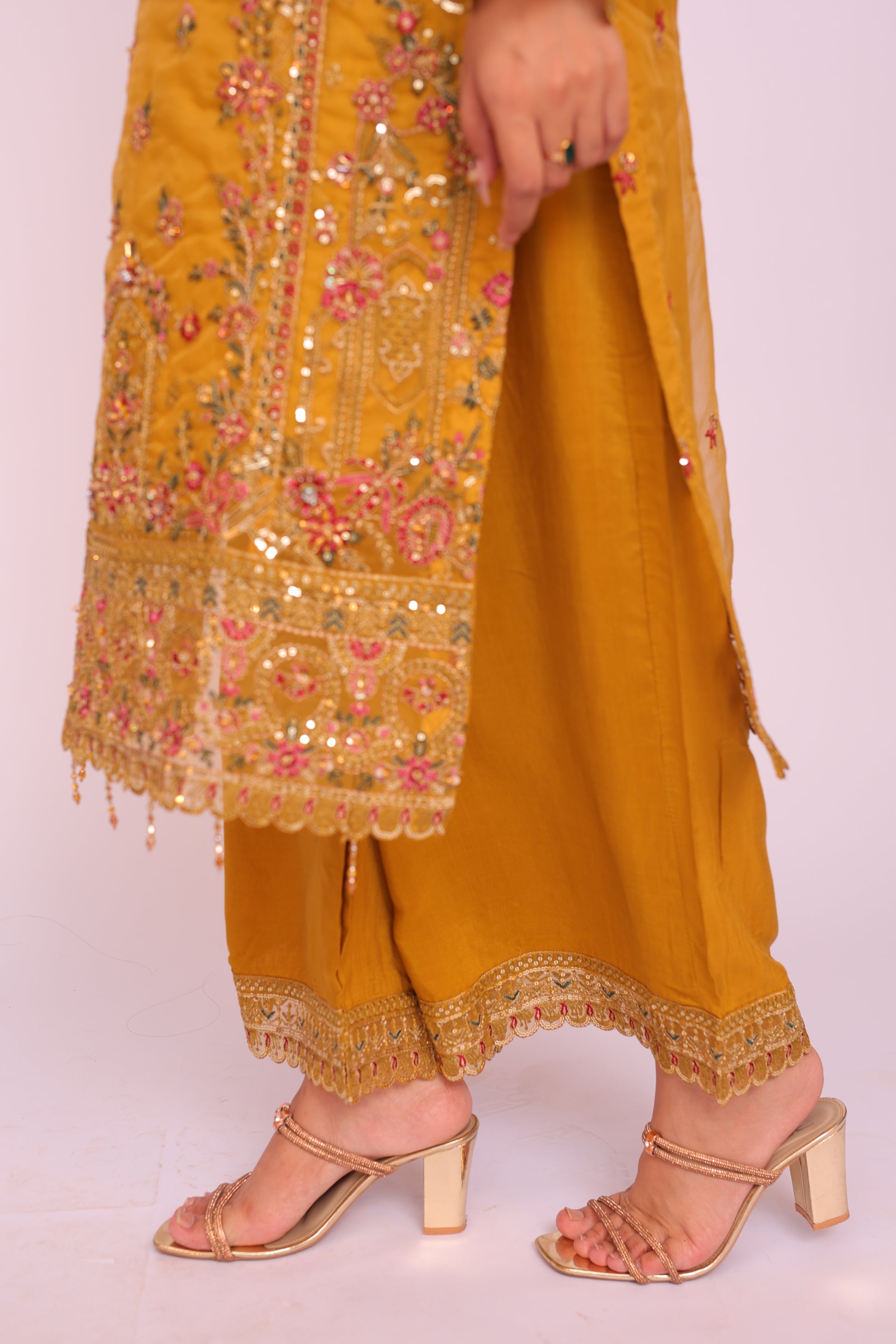 Zehra Mustard – Hand Embellished 3pc Stitched - PP00290