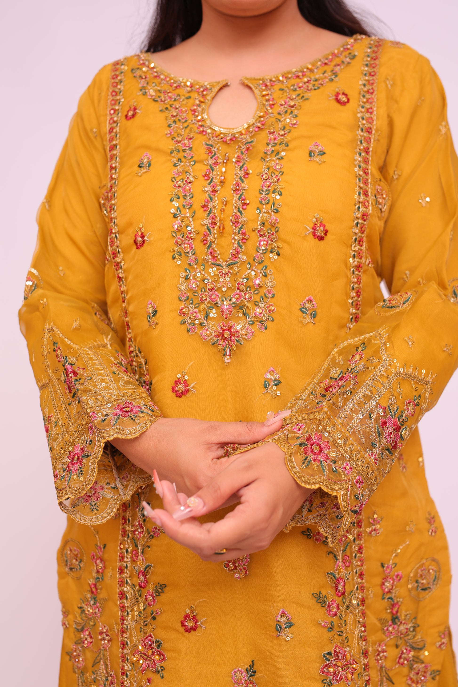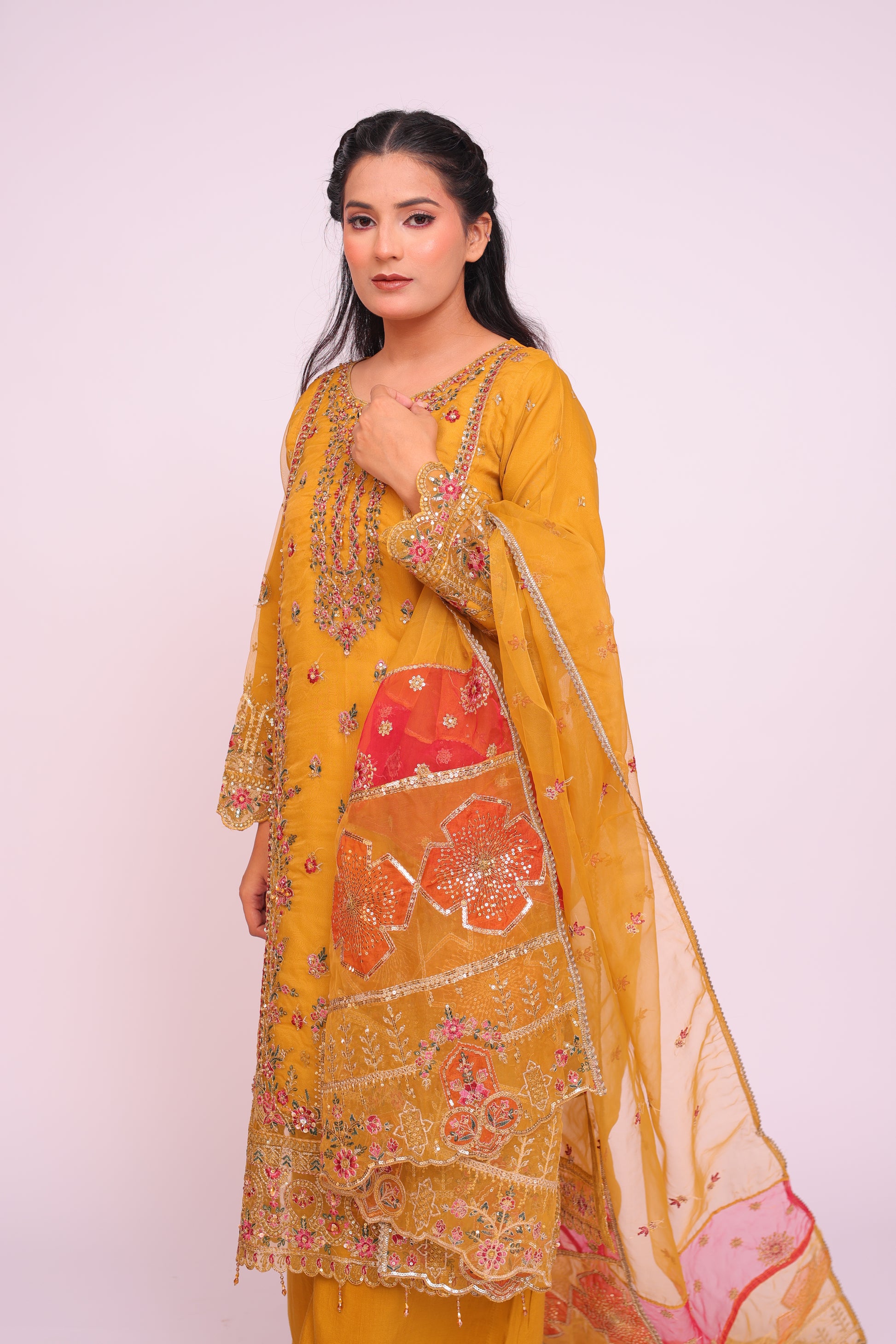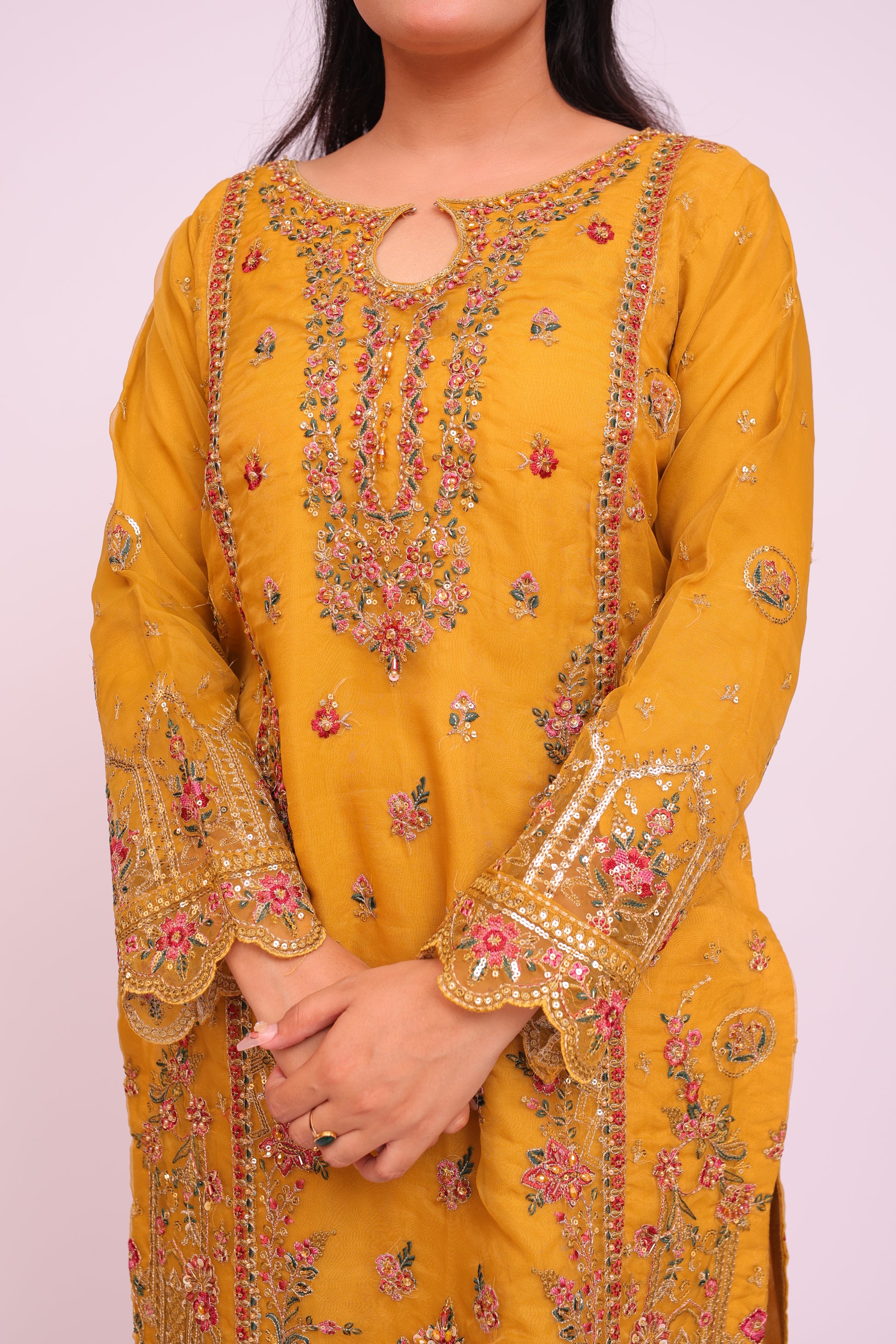 Zehra Mustard – Hand Embellished 3pc Stitched - PP00290